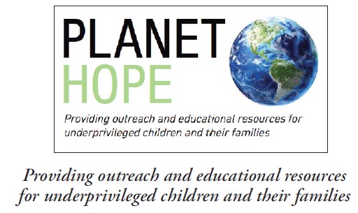 Founded in 1993 by sisters Kelly & Sharon Stone, Planet Hope is a non-profit 501(c)3 organization that provides outreach and educational resources to homeless, abused, and terminally ill children. Planet Hope Programs include: Summer Camp, Food and Warmth Resources, Emergency Referral Programs and Hope for the Holidays.